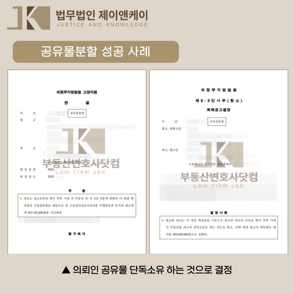 공유물분할소송 승소 사례 : 부동산변호사닷컴 | 법무법인 제이앤케이